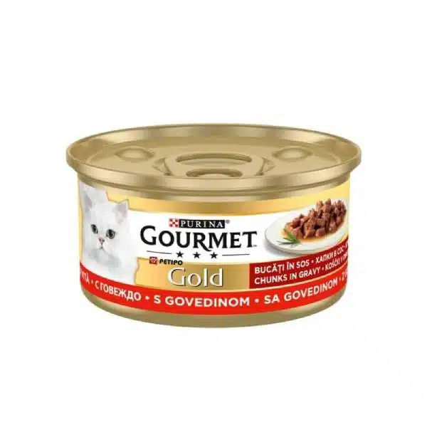 کنسرو گربه گورمت گلد مدل چانک با طعم بیف
