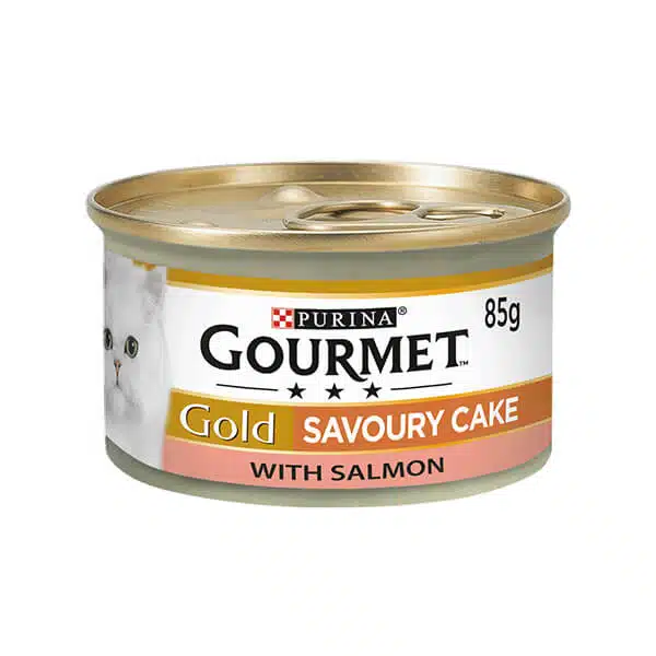 کنسرو گربه گورمت گلد ماهی سالمون با بافت کیک
