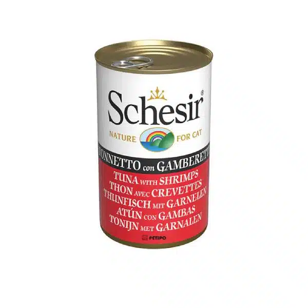 خانه / گربه / غذای خشک / کنسرو گربه با طعم ماهی تن و میگو شسیر ۱۴۰ گرم