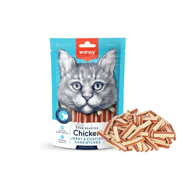 تشویقی ساندویچی گربه ونپی با طعم مرغ و ماهی کاد _ ۸۰ گرم